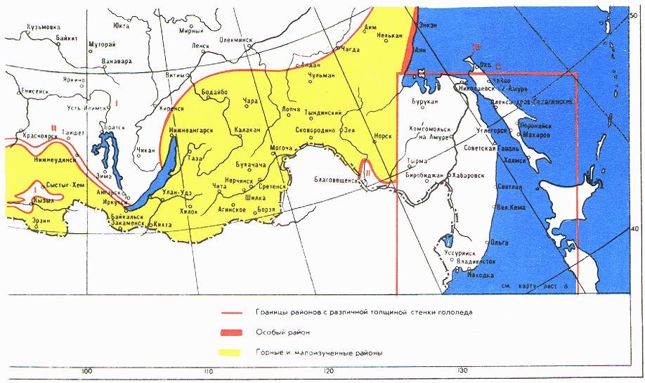 Для ВЛ, сооружаемых в малоизученных районах*, значения скоростного напора ветра и толщины стенки гололеда рекомендуется принимать на район выше.