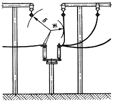Тяжение спусков от шин к аппаратам ОРУ не должно вызывать недопустимые механические напряжения при низких температурах и недопустимое сближение проводов при сильном ветре.