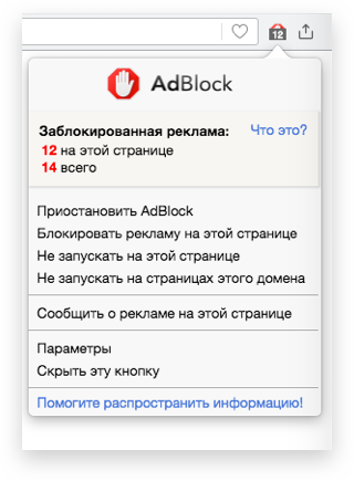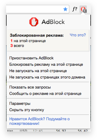 Нажмите на иконку AdBlock или AdBlock Plus, чтобы применить настройки