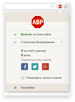 В AdBlock Plus нажмите «Включен на этом сайте»