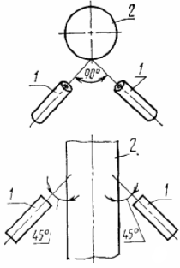 При испытании кабельных изделий с внешним диаметром до 50 мм включительно применяют одну горелку, диаметром св. 50 мм - две горелки.