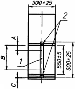 ![]() 1 - образец; 2 - опорный стержень и крепление медной проволокой; А - минимальная длина необугленной части поверхности (50 мм), В - максимальное расстояние до нижней границы обугленной части поверхности (540 мм), С - расстояние от дна камеры до нижнего конца образца (около 50 мм) Рисунок 2 - Расположение образца в испытательной камере |