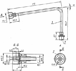 1 - медная трубка диаметром 6,3 мм; 2 - отверстия диаметром 1,6 мм; 3 - место крепления бутановой паяльной лампы