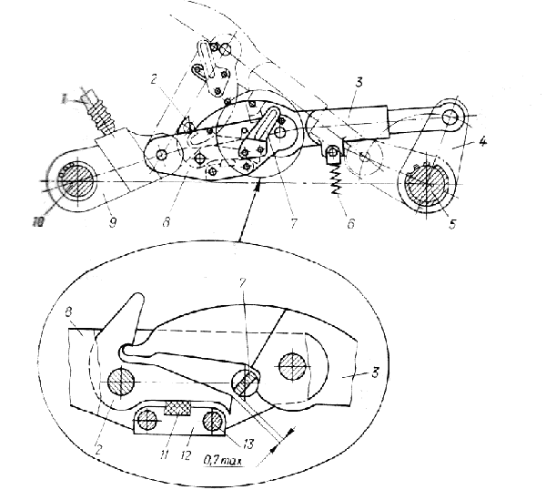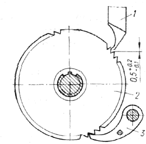 Рис. 12. Установка зазора между зубьями собачки и храпового колеса