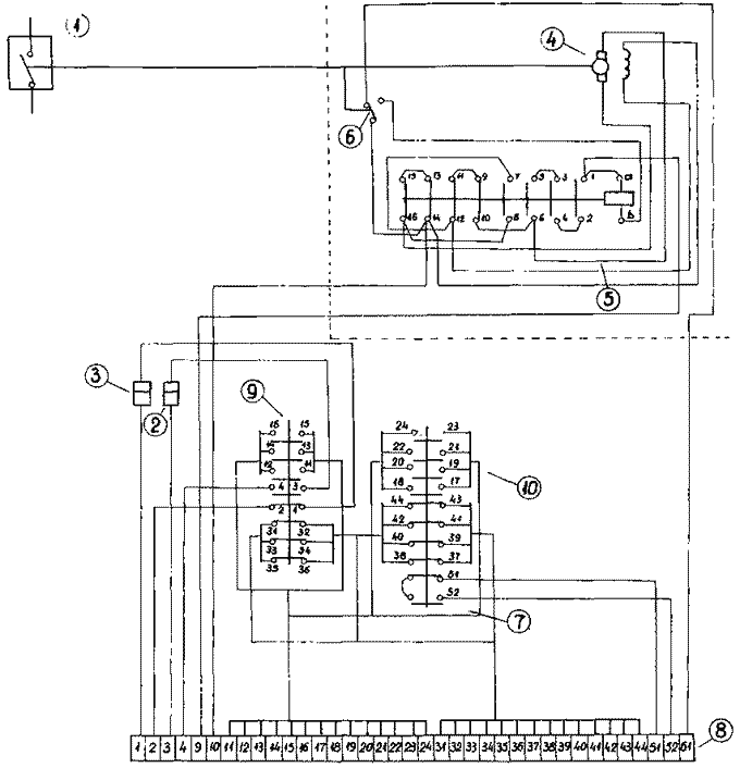 После этого следует демонтировать сигнальное устройство и клеммный ряд 52 и 53 путем отвинчивания двух болтов М 8 и контактора 51 - путем отвинчивания двух винтов М 4.