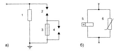 1 - резистор; 2, 4 - искровой промежуток; 3 - плавкая вставка; 5 - электромагнитный счетчик телефонного типа; 6 - тервитовый диск.