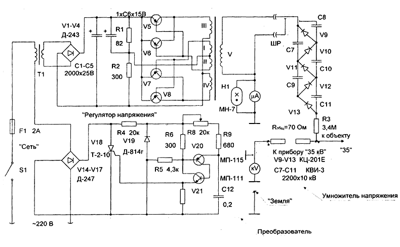 Рис. 4,а. Схема измерения пробивного напряжения вентильного разрядника.