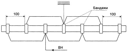 Испытанию повышенным напряжением должна также подвергаться изоляция тяг и направляющих масляных выключателей после их ремонта, лакировки и сушки. Для этого тяга делится на участки по 100 мм плотно наложенными станиолевыми бандажами шириной 5-10 мм, к которым подается испытательное напряжение 40 кВ (см. рис. 4.7). Длительность испытания каждого участка 5 мин. Тяга считается выдержавшей испытание, если не наблюдалось сплошное перекрытие или перекрытие скользящими разрядами ни на одном из участков, а после испытания отсутствуют местные перегревы и потемнение поверхности.