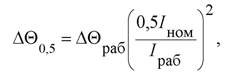 где ΔΘ 0,5 - избыточная температура при токе нагрузки 0,5Iном; ΔΘРаб - избыточная температура при рабочем токе нагрузки Iраб.